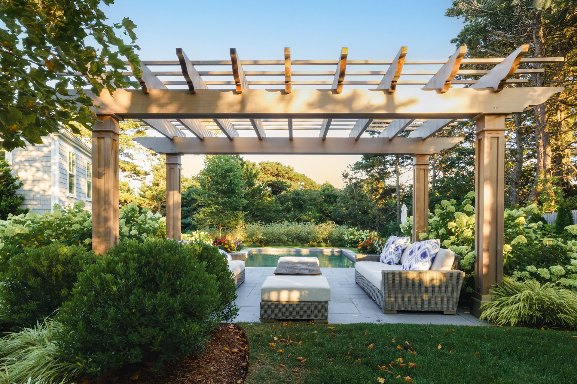 Bespoke pergolas, pavilions or gazebos add shade and shelter. Each structure we build stands up to the region's distinct climate, offering year-round use.